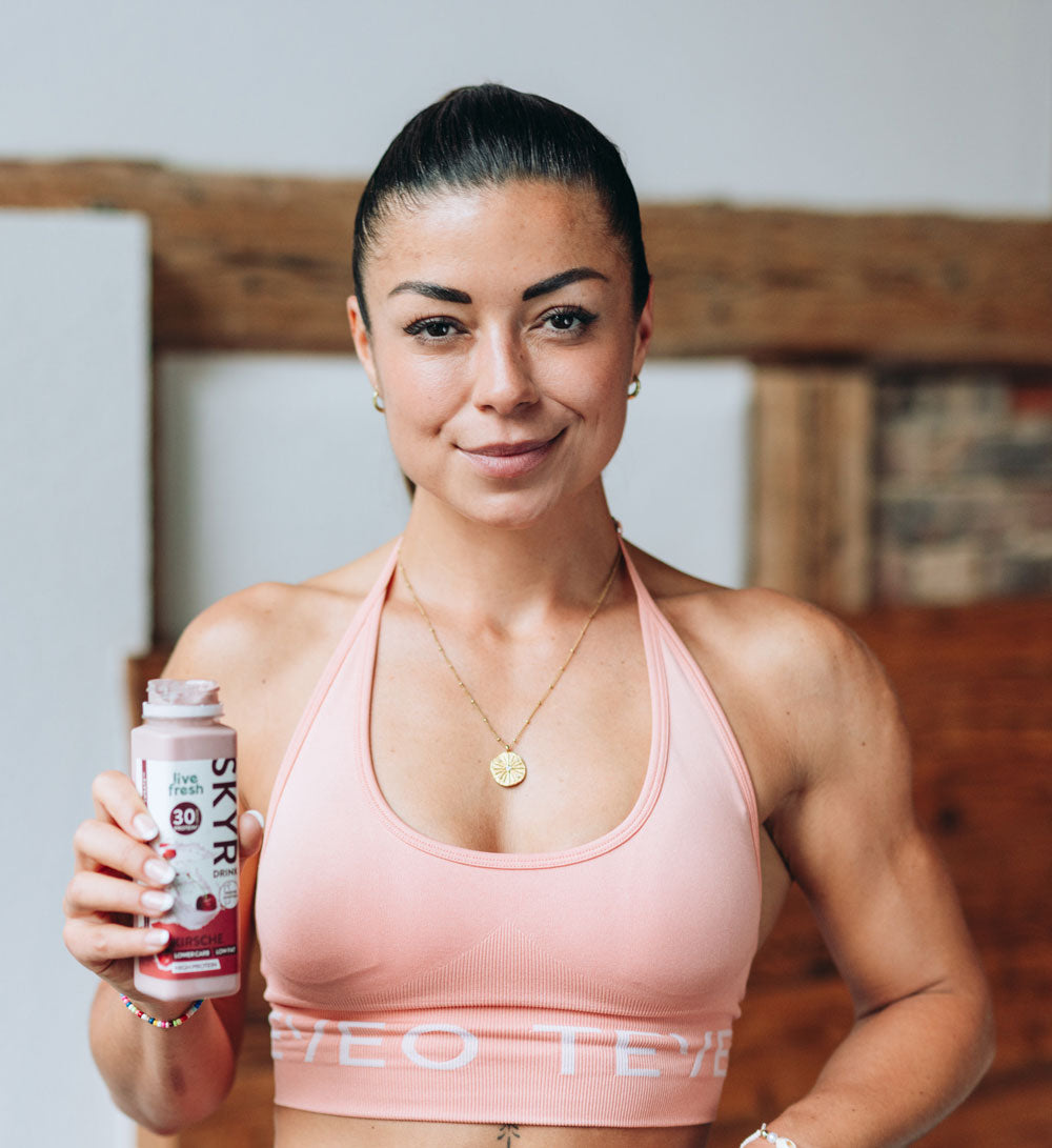 "De Skyr Drink is gewoonweg briljant! Het smaakt fantastisch en geeft me alles wat ik nodig heb na de training." - Tahnee, fitnessmodel
